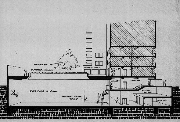 gallery, private cocktail lounge, gymnasium, banquet room and kitchen,