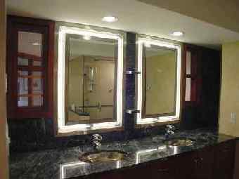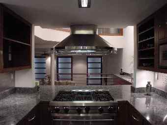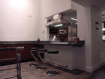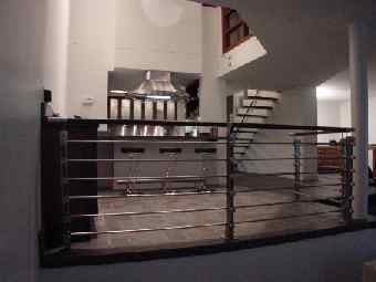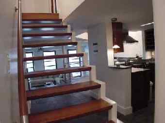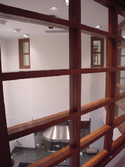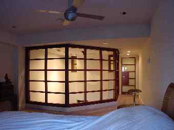 | This two-bedroom 2½ bath, 2000+sf New York apartment designed in an adapted Far-Eastern style incorporates a gourmet kitchen, home theater, integrated audio/video system and remote control scene lighting throughout the apartment. The stair is constructed of tubular steel suspended into a steel column and finished with cherry wood treads. The floors of the kitchen, dining and seating areas are finished in various-sized porcelain tiles. Customized backlit shoji screens and a stainless steel and cherry wood railing surround the living room. Translucent laminated glass panels, mimicking rice paper, were inserted into the cherry wood custom-designed doors. The master bedroom suite includes a transparent glass and cherry wood wall overlooking a two-story seating area and the kitchen. Remote control lighting and integrated shades provide privacy for the bedroom. The master bath in travertine and green marble overlooks the two-story space and bedroom, adding an additional dimension to this room. Neon lighting surrounds the stainless steel trough around each of the medicine cabinets. A walk-in closet with travertine and green marble flooring and birdseye maple cabinetry completes the master suite. | |